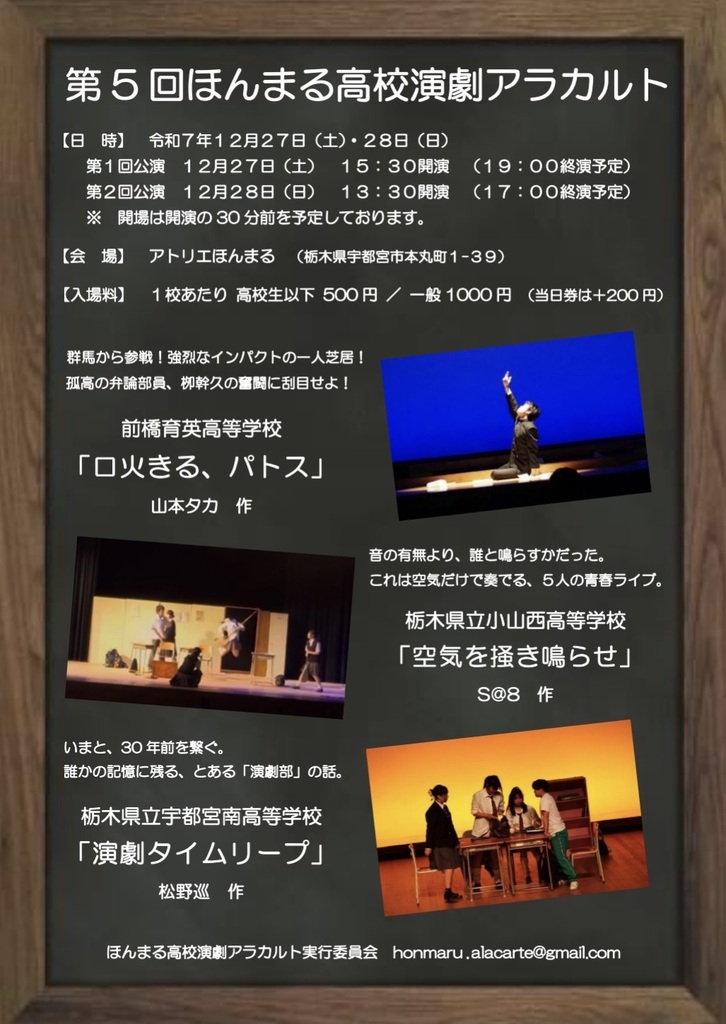 【入場料】 1校あたり 高校生以下 500円 / 一般1000円 (当日券は+200円)